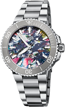Дизайн и функциональность новых часов базируются на модели Oris Aquis Date 43,5-милилметровый корпус изготовлен из нержавеющей стали, он оснащён дайверским поворотным ободком однонаправленного вращения. Корпус водостоек до 300 метров (30 атм.). Часы предлагаются либо на ремешке в различных вариантах исполнения, либо на металлическом браслете. Циферблат с покрытыми люминесцирующим составом Super-LumiNova® накладными маркерами часовой шкалы и стрелками защищён сапфировым стеклом. 01 733 7730 4153-07 4 24 66EB