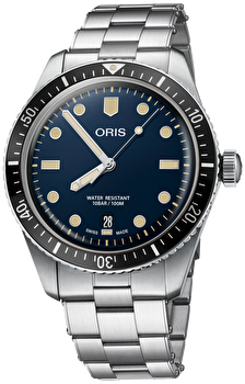 Новые часы Oris Divers Sixty-Five унаследовали ретро-дизайн оригинальной модели из 1960-х, однако, их конструкция была серьёзно модернизирована с использованием технологий часового дела XXI века. Часовое стекло, форма которого напоминает форму пластикового стекла винтажного прообраза, теперь изготовлено из сапфирового стекла, которое практически невозможно поцарапать. Кроме того, на внутреннюю поверхность стекла нанесено просветляющее покрытие, что уменьшает отражение света от него и улучшает чёткость циферблата под водой. 01 771 7744 4354-07 8 21 18