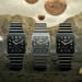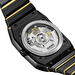Это создает гармоничную, монолитную композицию, где корпус и браслет сливаются в единое целое. Браслет, выполненный из полированных черных керамических звеньев и золотистых звеньев из нержавеющей стали с PVD-покрытием, надежно фиксируется тройной застежкой.