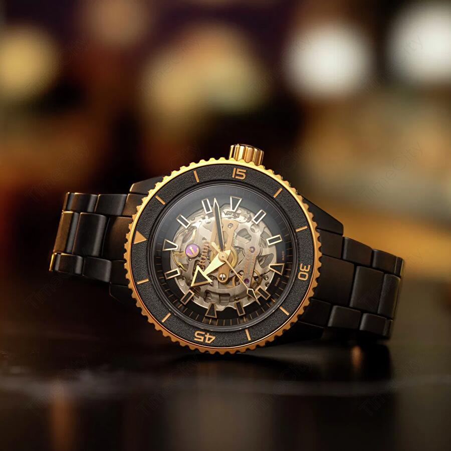 Модель Captain Cook High-Tech Ceramic Skeleton – это воплощение современных технологий в часовом деле. Сердцем часов является инновационный механизм R808, отличающийся высокой точностью и надежностью благодаря антимагнитной спирали NivachronTM.