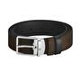 Изделие выполнено из высококачественной кожи с фактурным тиснением Sartorial: классический черный цвет с одной стороны контрастирует с благородным оттенком хаки с другой, позволяя мгновенно менять акценты в образе. Увеличенная ширина ремня придает конструкции визуальную солидность и плотность, в то время как изящная пряжка-подкова с зеркальным палладиевым напылением привносит в облик финальный штрих актуальной и лаконичной роскоши. MB222147