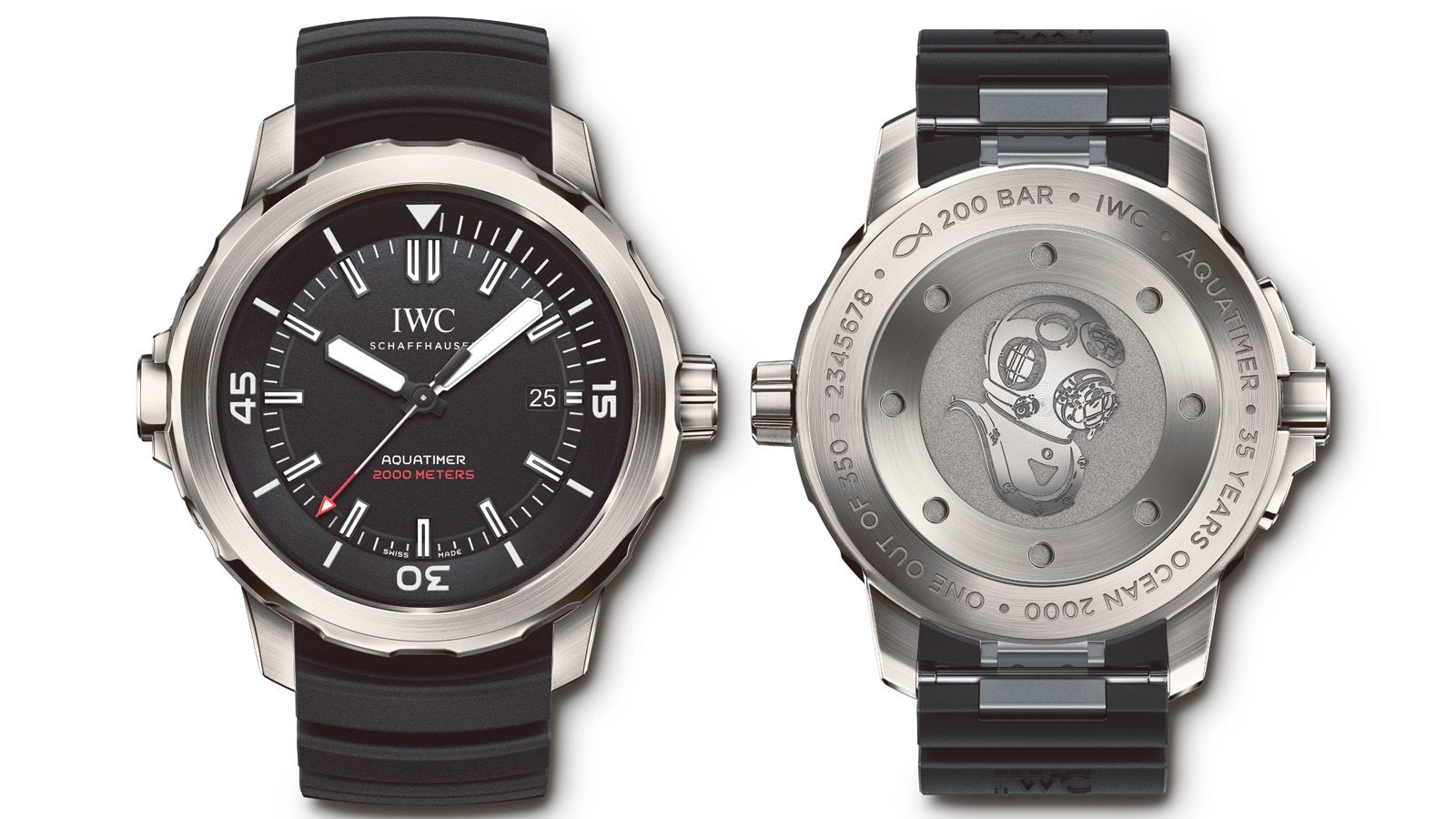 Модель Ocean 2000 была создана Фердинандом А. Порше в 1982 году. Часы авангардного дизайна, предназначенные для профессиональных дайверов и способные выдерживать большое давление, на много лет опередили свое время. Икона стиля отмечает 35-летний юбилей, к которому приурочен выпуск модели Aquatimer Automatic 2000 Edition «35 Years Ocean 2000». Часы с высотой корпуса всего 14,5 мм выдерживают давление до 200 бар, что делает их одними из самых тонких часов для профессиональных дайверов в коллекции IWC Aquatimer.