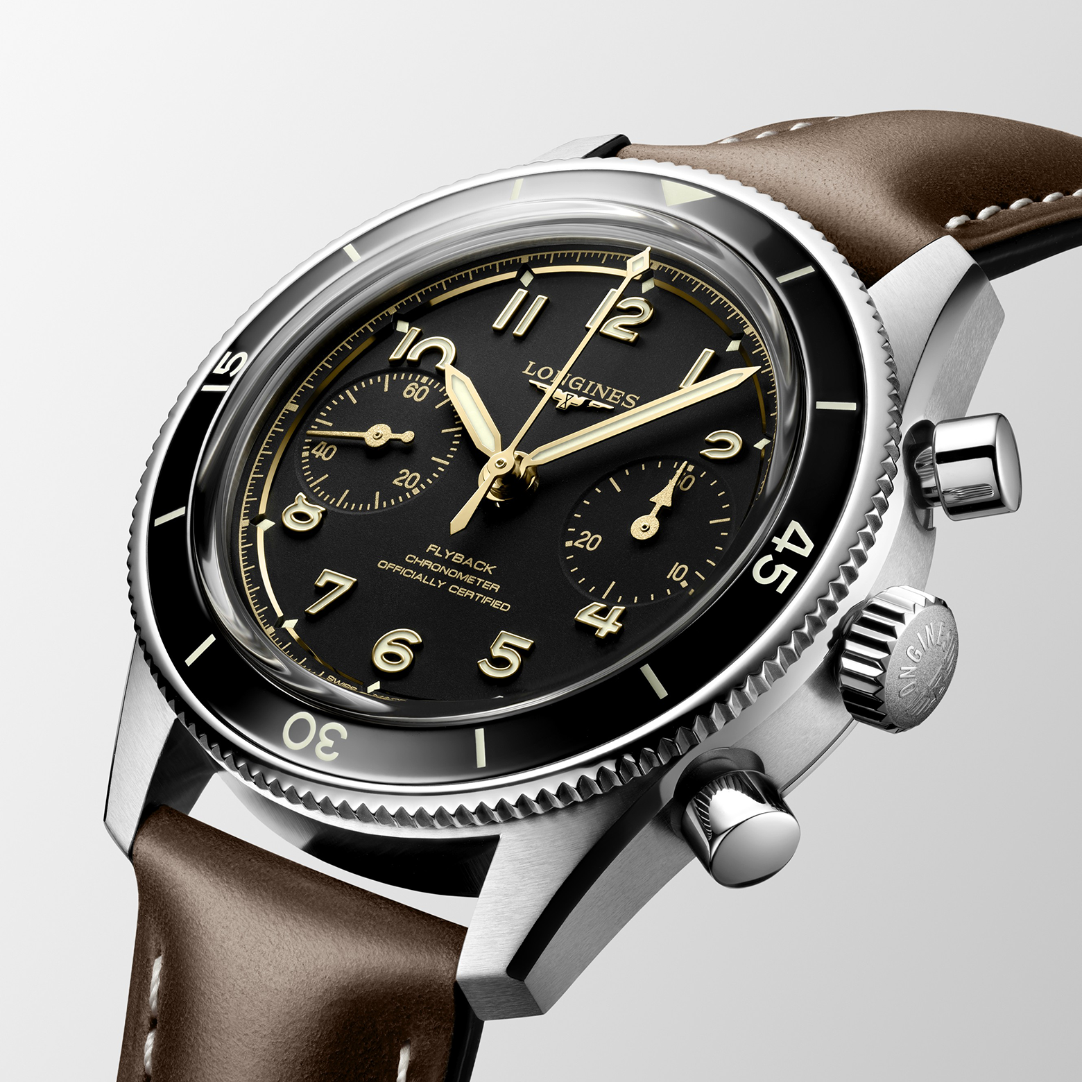Модель Flyback продолжает новаторский вклад Longines в создание хронографов с функцией flyback (обратный ход), впервые представленной брендом в 1930-х годах. Эта сложная функция позволяет мгновенно сбросить и начать новый отсчёт времени одним нажатием кнопки, в отличие от стандартного хронографа.