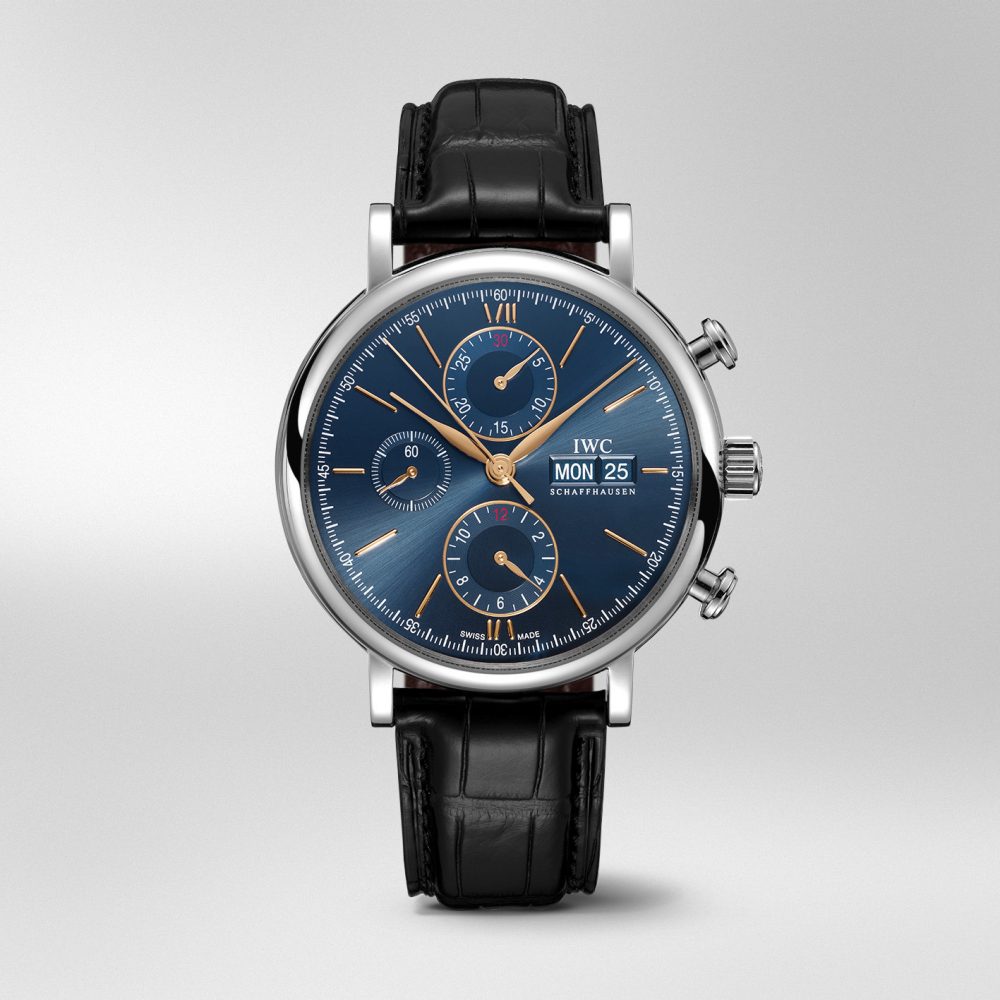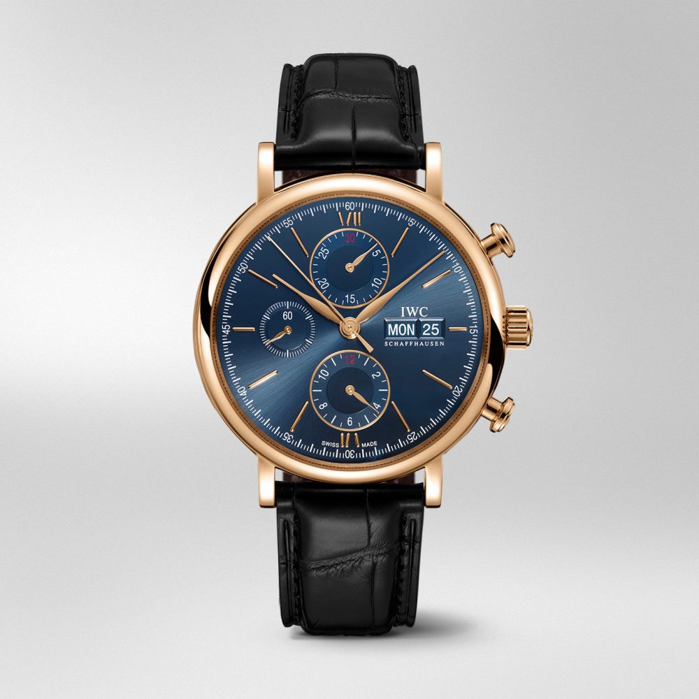 Хронограф Portofino, измеряющий отрезки времени как отдельно, так и в сумме до 12 часов, привносит в коллекцию спортивный элемент. Теперь эта популярная модель впервые предлагается в корпусе из 18-каратного розового золота и из стали с синим циферблатом с позолоченными стрелками и золотыми накладными отметками и черными ремешками из кожи аллигатора от Santoni. <br>