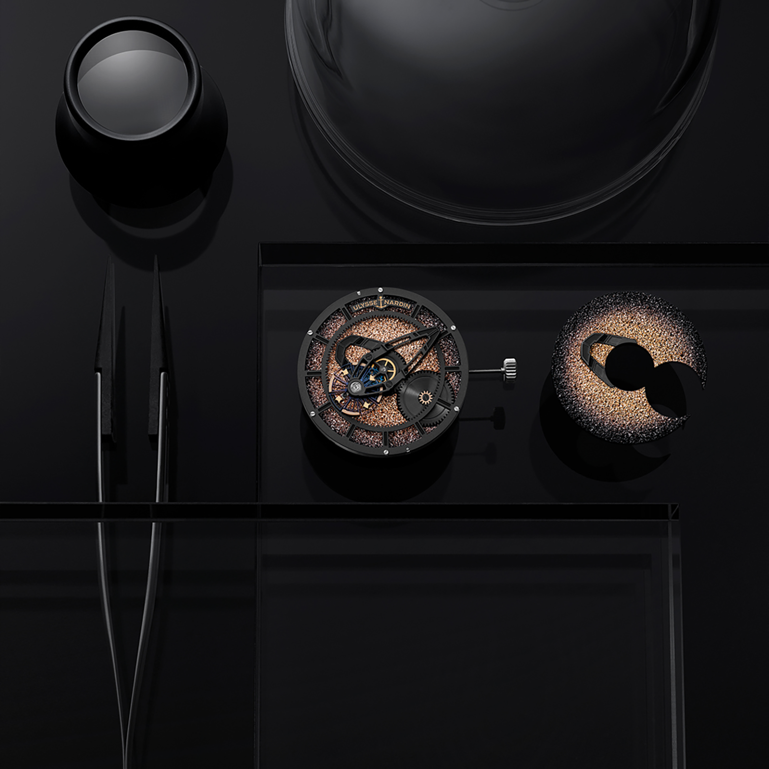ЭТО САМЫЕ СЛОЖНЫЕ ЧАСЫ С ИНДИКАЦИЕЙ ТОЛЬКО ЧАСОВ И МИНУТ ИЗ КОГДА-ЛИБО СОЗДАННЫХ, ОДНИ ИЗ САМЫХ ИННОВАЦИОННЫХ ЧАСОВ В ИСТОРИИ. ВРАЩАЮЩИЙСЯ ДИСК ИЗ КРИСТАЛЛИУМА: САМЫЙ СОВЕРШЕННЫЙ МАТЕРИАЛЬНЫЙ ПРОЦЕСС ДЛЯ ДЕКОРАТИВНОГО ИСКУССТВА — НЕТ ДВУХ ОДИНАКОВЫХ.