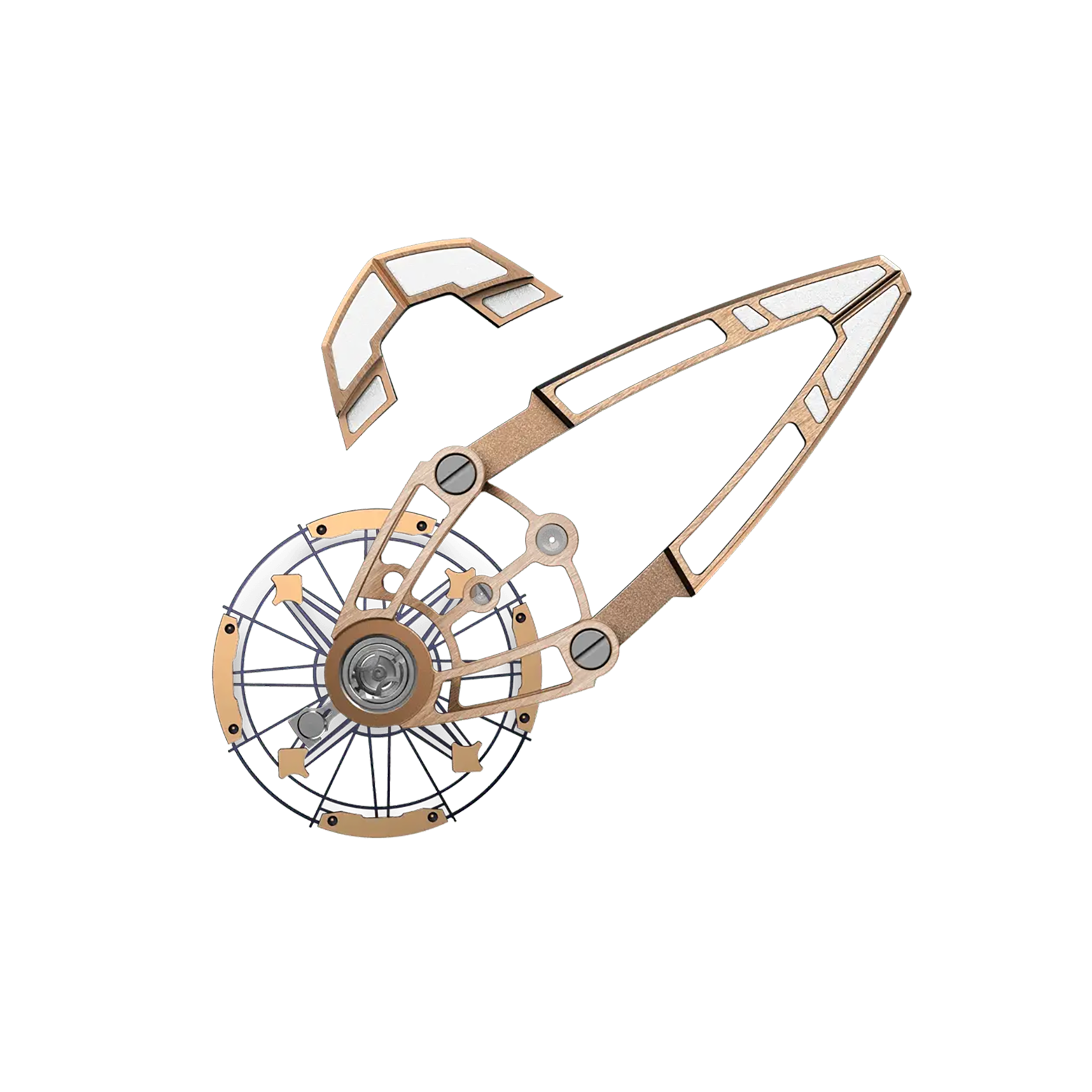Часы Freak X продолжают развивать основополагающие идеи оригинальной серии Freak. Их уникальность заключается в том, что весь часовой механизм функционирует как индикатор времени. Часы отображаются посредством стрелки, расположенной на вращающемся диске, в то время как сам механизм совершает полный оборот ежечасно, отмечая минуты. Это сложное решение, известное как "парящая карусель", примечательно тем, что механизм закреплен без верхнего моста, создавая впечатление, будто он "парит" над часовым диском. Это не только захватывающее зрелище, но и пример выдающегося механического исполнения.