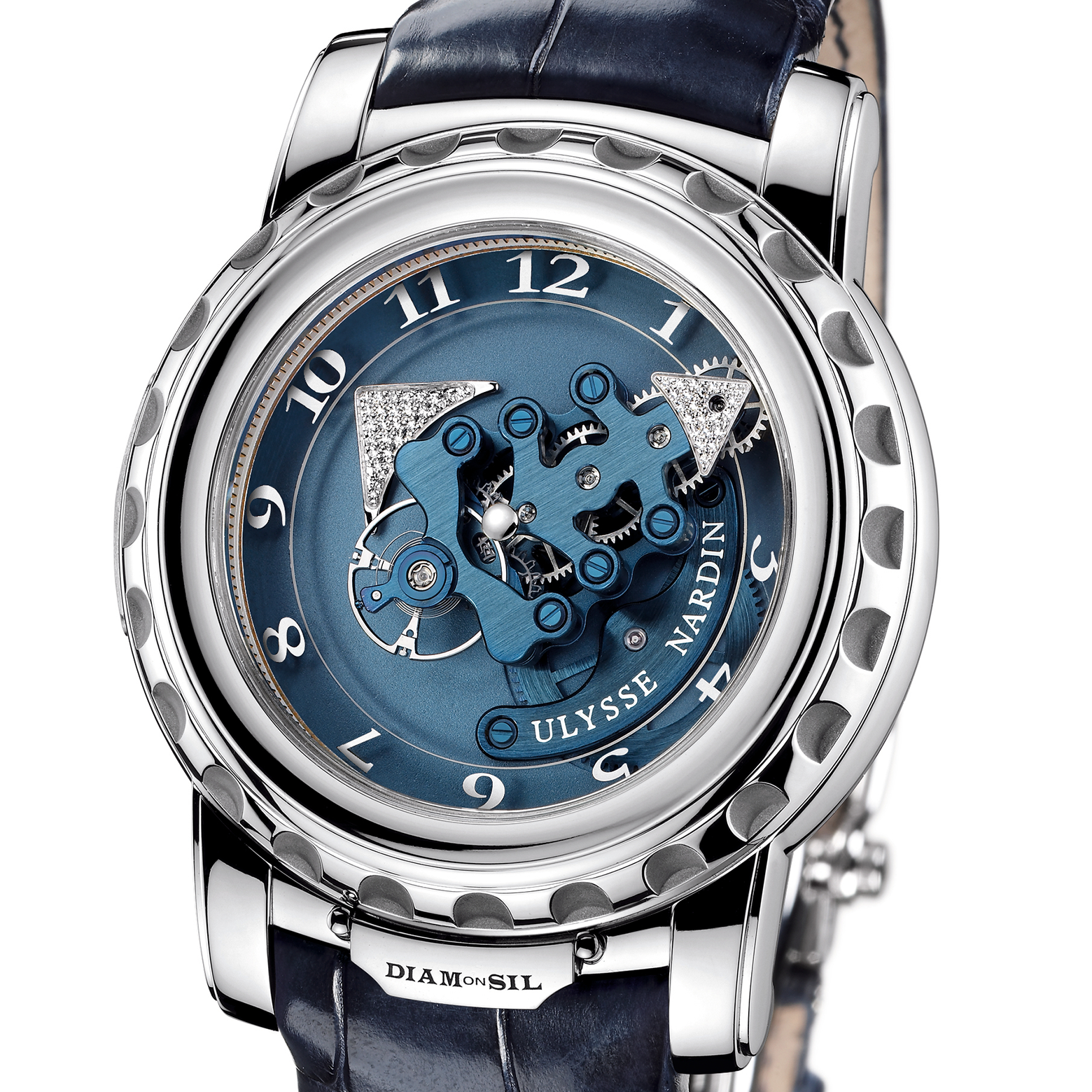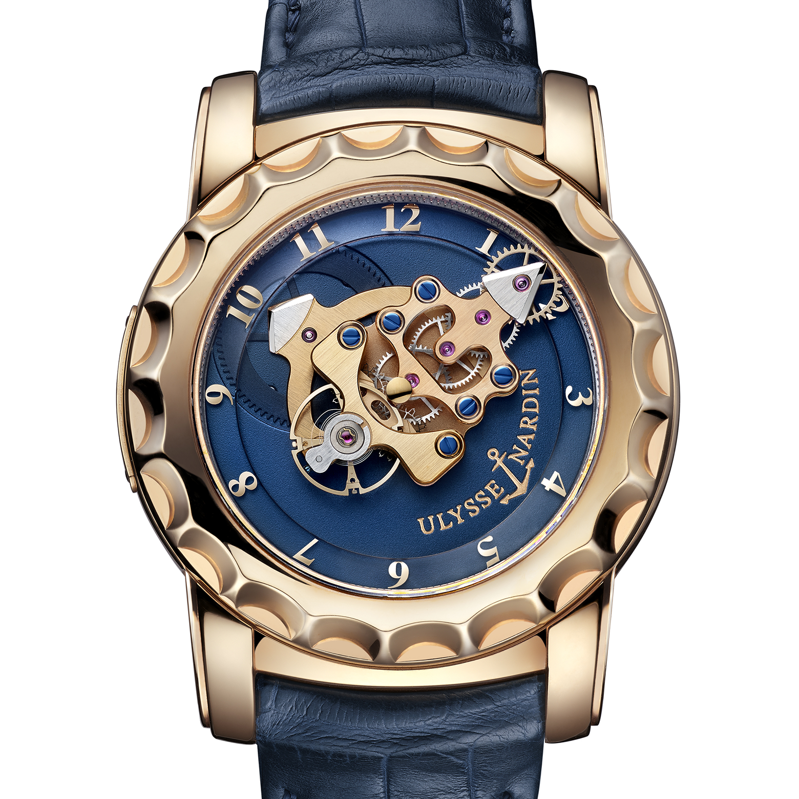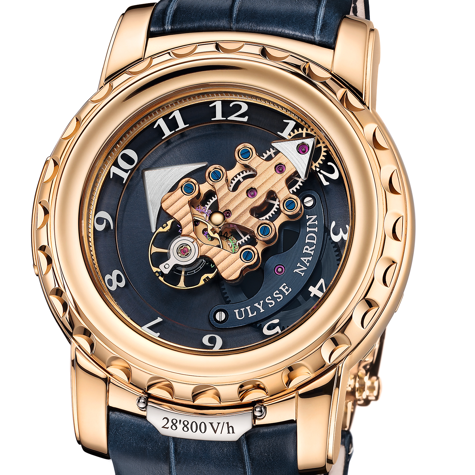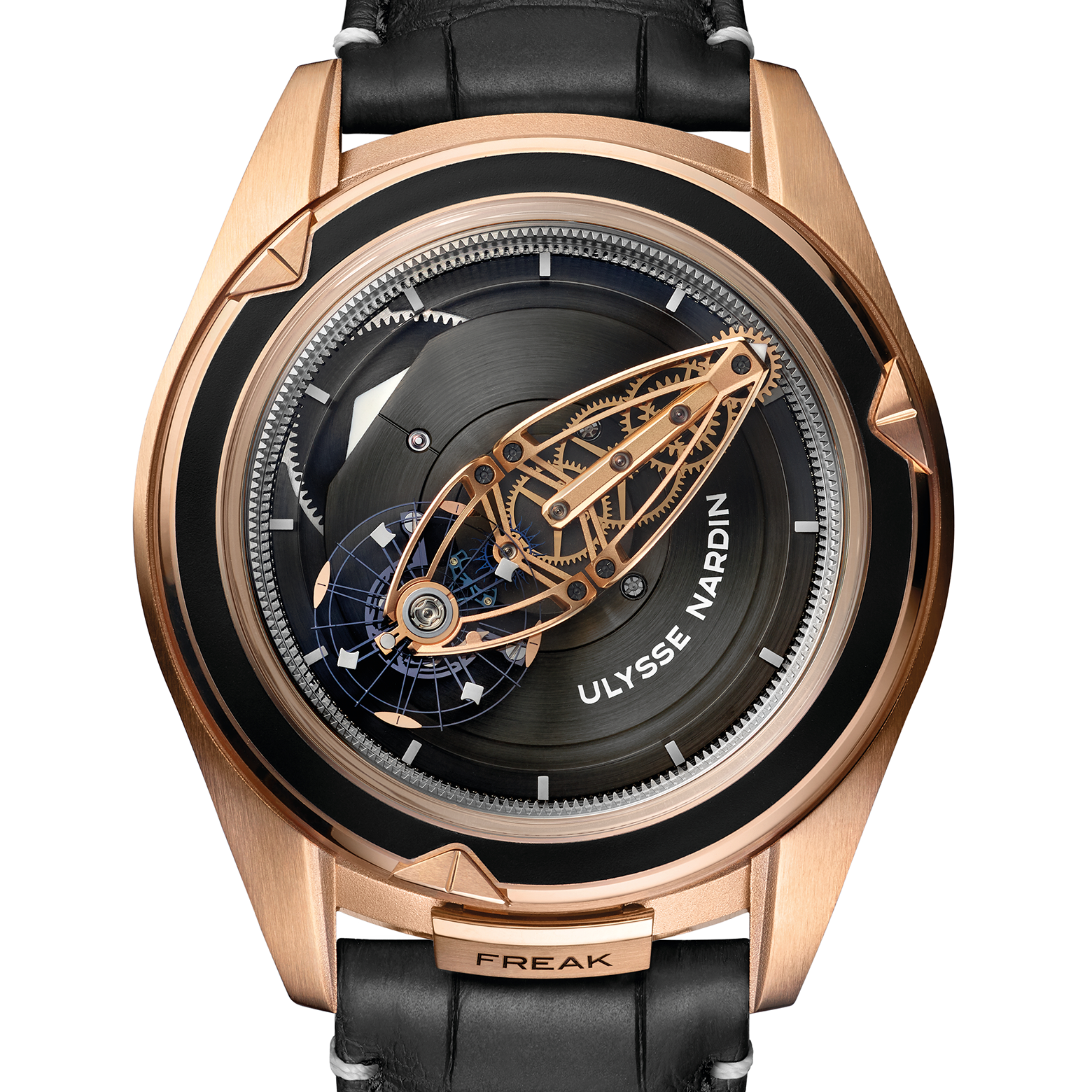 Инновационная архитектура механизмов Ulysse Nardin позволила интегрировать планетарную передачу, критически важную для безупречного вращения системы Freak и поддержания точности хода.