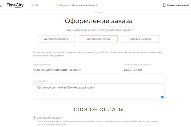 Для онлайн-покупки в бутике TimeCity, пожалуйста, совершите следующие действия: