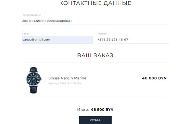 После проверки корректности введенной информации, необходимо подтвердить заказ кликнув по кнопке "Готово".